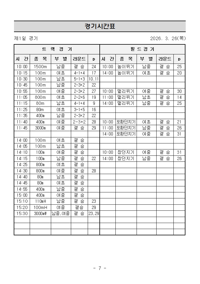 제55회 전국소년체육대회 전북 대표 선발전 경기시간표 페이지 정보 작성자 전북육상연맹 댓글 0건 조회 299회 작성일 26-03-19 09:58 본문 붙임파일 참고해주세요. 목록 다음글제37회전북역전마라톤대회 구간별 오더용지 25.10.28 댓글목록 댓글목록 등록된 댓글이 없습니다.